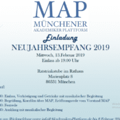 Die Münchener Akademiker Plattform wächst weiter. Am 13.2 haben wir im neuen Rathaus unseren 5. Neujahrsempfang gefeiert. Der Vizepräsident des Bayerischen Landtags Markus Rinderspacher, Ingrid Ritt von der Stiftung Wertebündnis, Stadträtin Heike Kainz und Johann Wagner vom Bezirksausschuss Allach-Untermenzing nahmen u.a. an der Veranstaltung teil. Durch den Abend führte Moderator Xavier Rosell. Zunächst zeigte ein Kurzfilm einige Aktivitäten des Vereins. Anschließend wurden in der Begrüßungsrede durch den Vereinsvorstand aktuelle Aktivitäten des Vereins im beruflichen sowie im kulturellen Bereich erwähnt. Im Folgenden wurde in der Rede ein großer Wert auf Demokratie, Menschenrechts- und Integrationsprobleme gelegt. Dabei wurde insbesondere auf Menschenrechtsverletzungen in der Türkei eingegangen. „Wir müssen uns gemeinsam für mehr Demokratie und Recht einsetzen”, hieß es in der Rede. Frau Ritt forderte in ihrer Rede Einheit und Bündnis. Zum Abschluss des Abends genossen die Gäste ein offenes Buffet mit Gerichten aus der orientalischen Küche, begleitet von Bayerischer Volksmusik gespielt von der Gruppe St. Alto Musik.