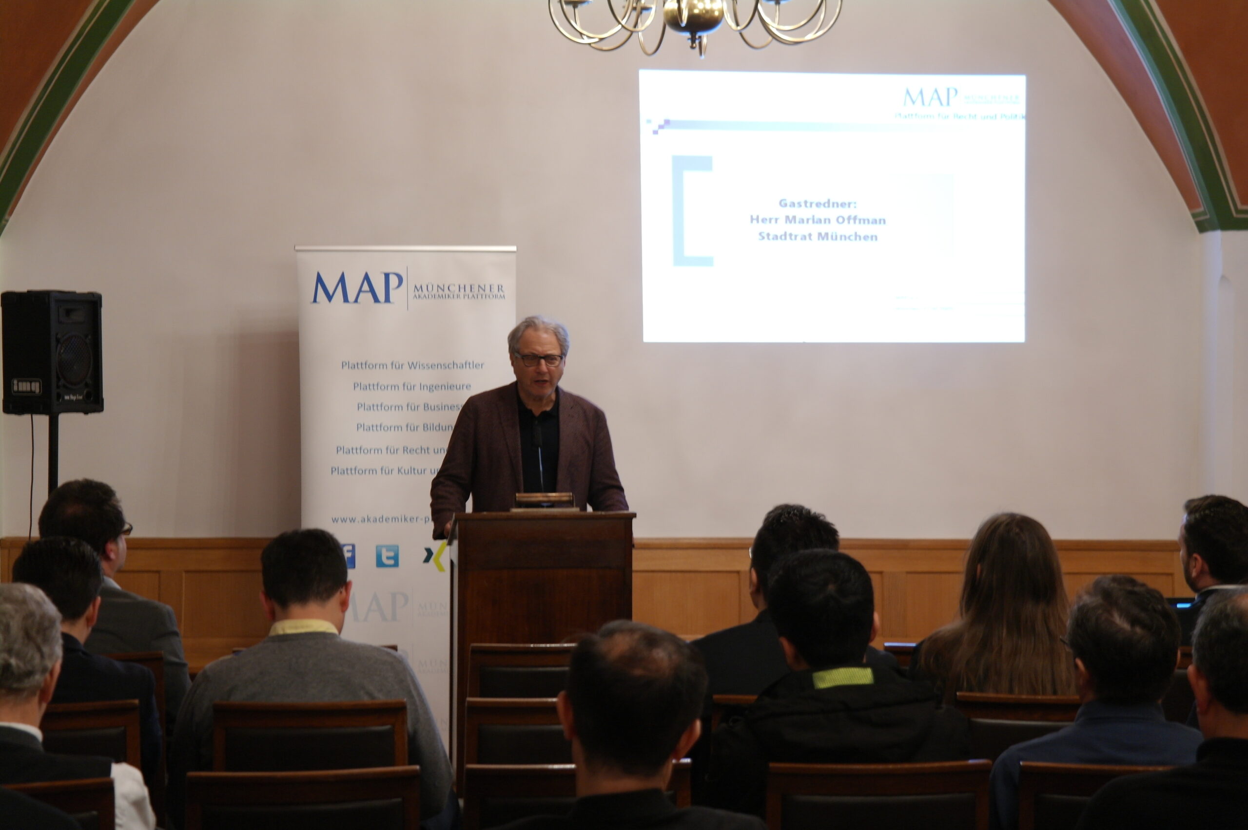 Die Münchener Akademiker Plattform wächst weiter. Am 27.2 haben wir im neuen Rathaus unseren 6. Neujahrsempfang gefeiert. Stadtrat, Mitglied der SPD-Fraktion Marian Offman nahm u.a. an der Veranstaltung teil. Durch den Abend führte Moderator Xavier Rosell. Zunächst zeigte ein Kurzfilm einige Aktivitäten des Vereins. Anschließend wurden in der Begrüßungsrede durch den Vereinsvorstand aktuelle Aktivitäten des Vereins im beruflichen sowie im kulturellen Bereich erwähnt. Im Folgenden wurde in der Rede ein großer Wert auf Demokratie, Menschenrechts- und Integrationsprobleme gelegt. Dabei wurde insbesondere auf Menschenrechtsverletzungen in der Türkei eingegangen. „Wir müssen uns gemeinsam für mehr Demokratie und Recht einsetzen”, hieß es in der Rede. Zum Abschluss des Abends genossen die Gäste ein offenes Buffet mit Gerichten aus der orientalischen Küche, begleitet von Bayerischer Volksmusik gespielt von der Gruppe St. Alto Musik.